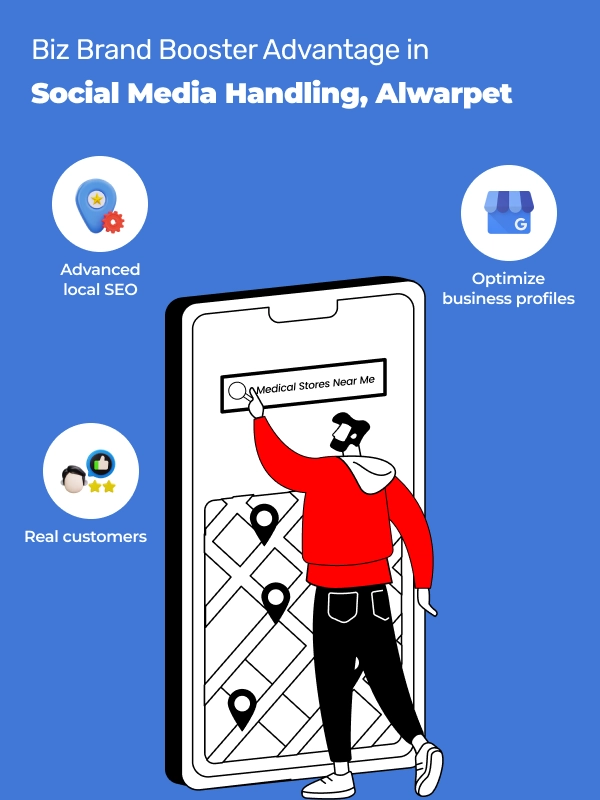 At Biz Brand Booster, we understand the value of being visible in Alwarpet’s active market. Local SEO is not about ranking higher; it's about making your business show up exactly when your customer is looking. Through Google Business listing optimization, correct listings, reviews by customers, and location marketing, we assist Alwarpet businesses to establish robust online presence. This gives them the trust and visibility they need to compete in a premium, fast-changing market like Alwarpet.