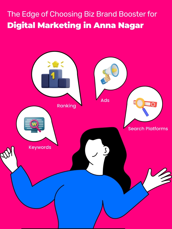 At Biz Brand Booster, we offer full-spectrum digital marketing services designed for Anna Nagar businesses that want to lead in their niche. From search engine optimization and paid ads to content marketing and local business listings, every campaign is mapped to real-time metrics and geographic demand. We don’t just target users in Chennai, but we hyper-focus locality-wise on neighborhoods like Anna Nagar to give your brand stronger relevance and high conversion opportunities in your local markets like Kalpauk & Mogappair and other major localities.